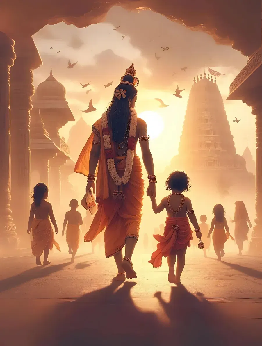This is another terminology that Sri Ramanujacharya introduces about Bhakti. Anudhyanam is an extension of Dhyanam. It means to stick with complete attachment to the process of Bhakti. Just like a mother holds the hands of a child through a crowded road. The child completely depends and is guided by the mother.