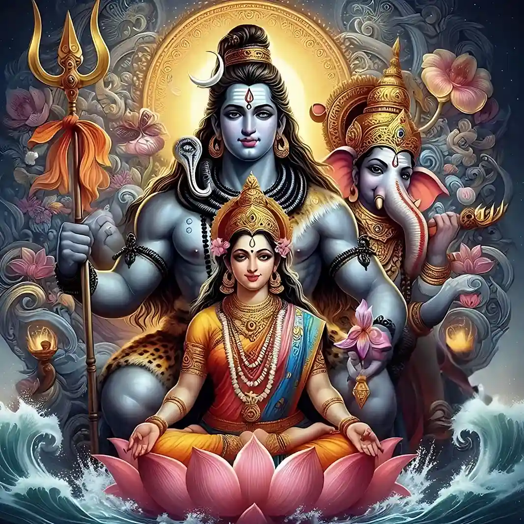 Lord Ganesha symbolizes knowledge and wisdom. He is the son of our universal parents, Mother Parvati and Lord Shiva. Parvati Devi is power personified; she is the goddess of material energy, hence she is also called Shakti.