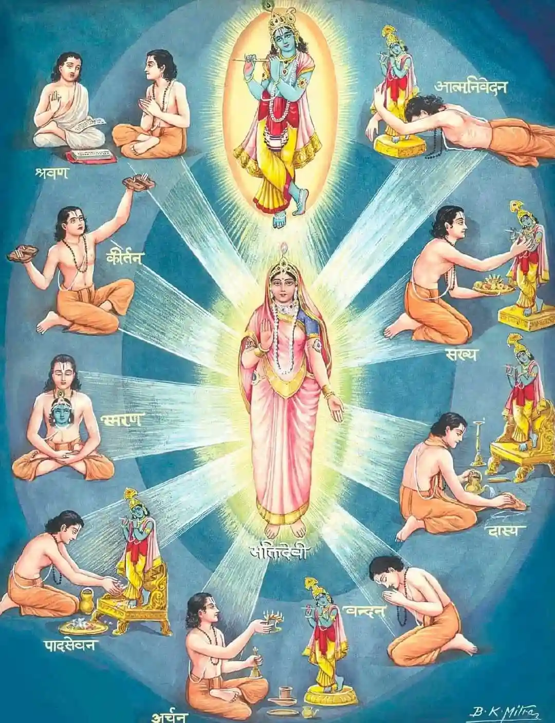There are 9 typical classifications of Bhakti known as “Navadha Bhakti” (नवधा भक्ति). They are-