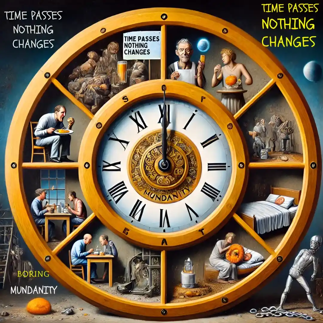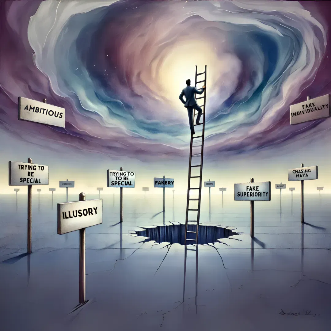 Man has the option to create a world of make-belief, within this universe. This lower propensity is this world of fakery. Man has the option to accept this world and drown himself in the muck of sensory-engagement and pleasure.