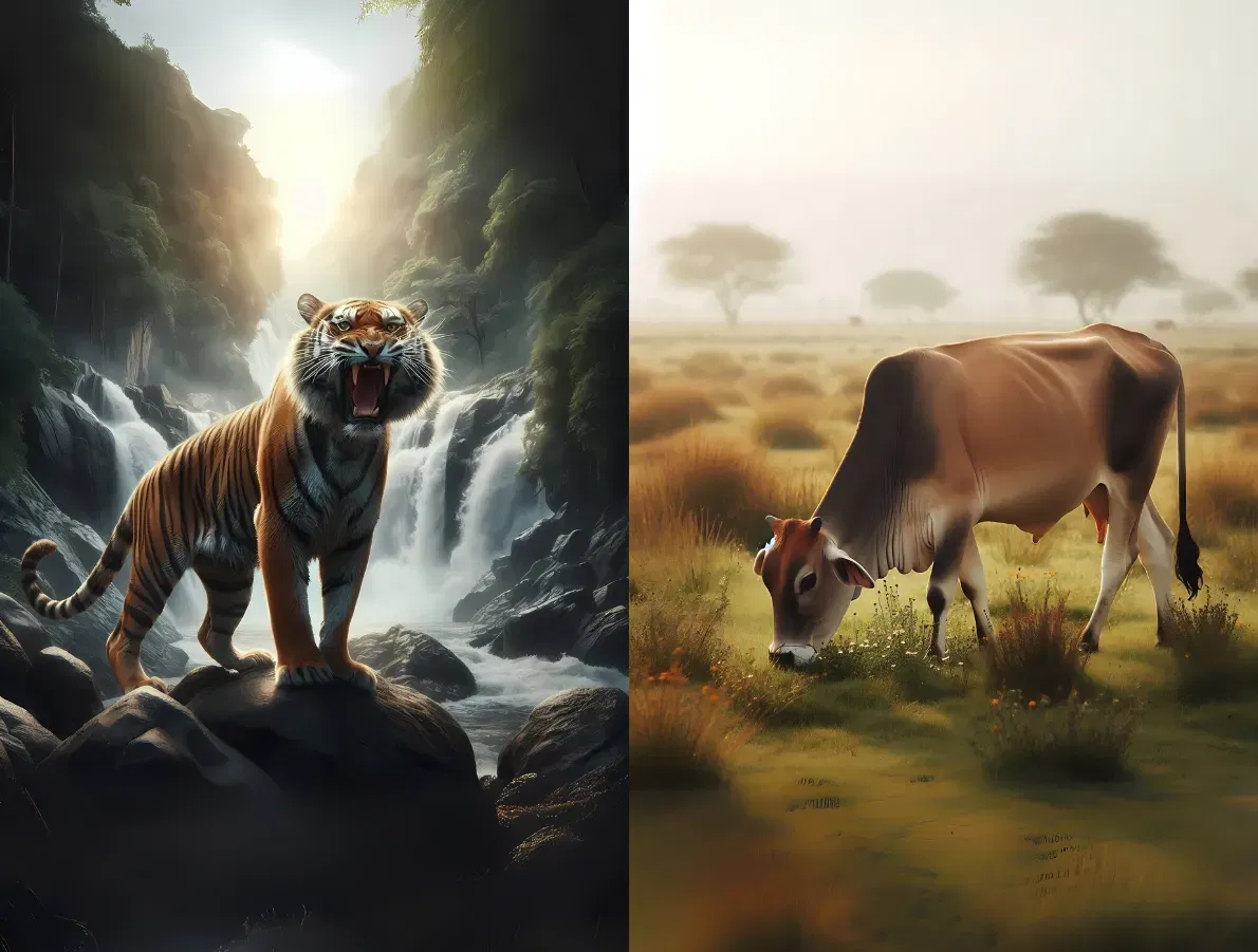 A tiger and cow differ in their temperament. A tiger is ferocious while a cow is gentle. Hence, the way of approaching each of them is different. Only a well-built man of Rajasik temperament can approach a tiger else he may injure himself.