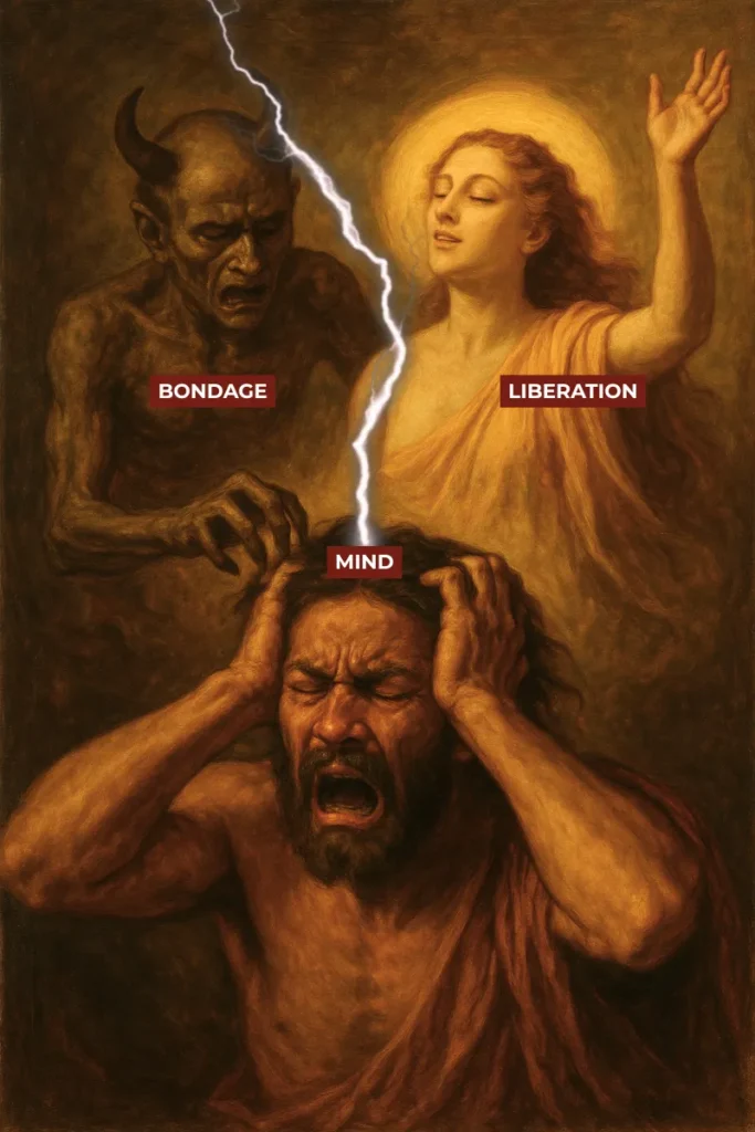 Likewise, good and evil pertain only to the mind. Desire gives rise to notions of virtue and sin. The Ātman, however, is desireless, stainless, and ever blissful. From the standpoint of the Self, these dual opposites dissolve completely. This transcendence of ethical polarity does not deny morality in worldly life; it simply reveals that the Ātman stands beyond all opposites, untouched by them.