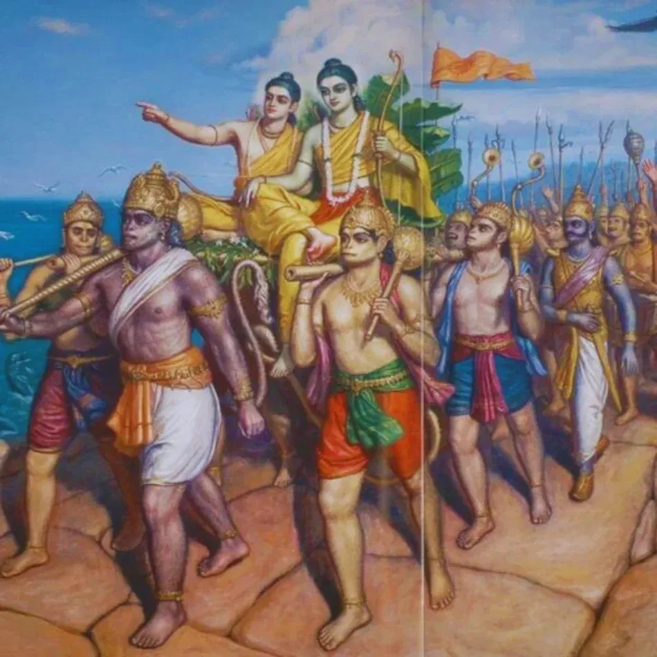 In this case, Shri Rama and his small army of monkeys and bears had defeated the great warrior Ravana, Indrajit, Kumbhakaran and his powerful army since pride had blinded the mighty Brahmanic-demon.