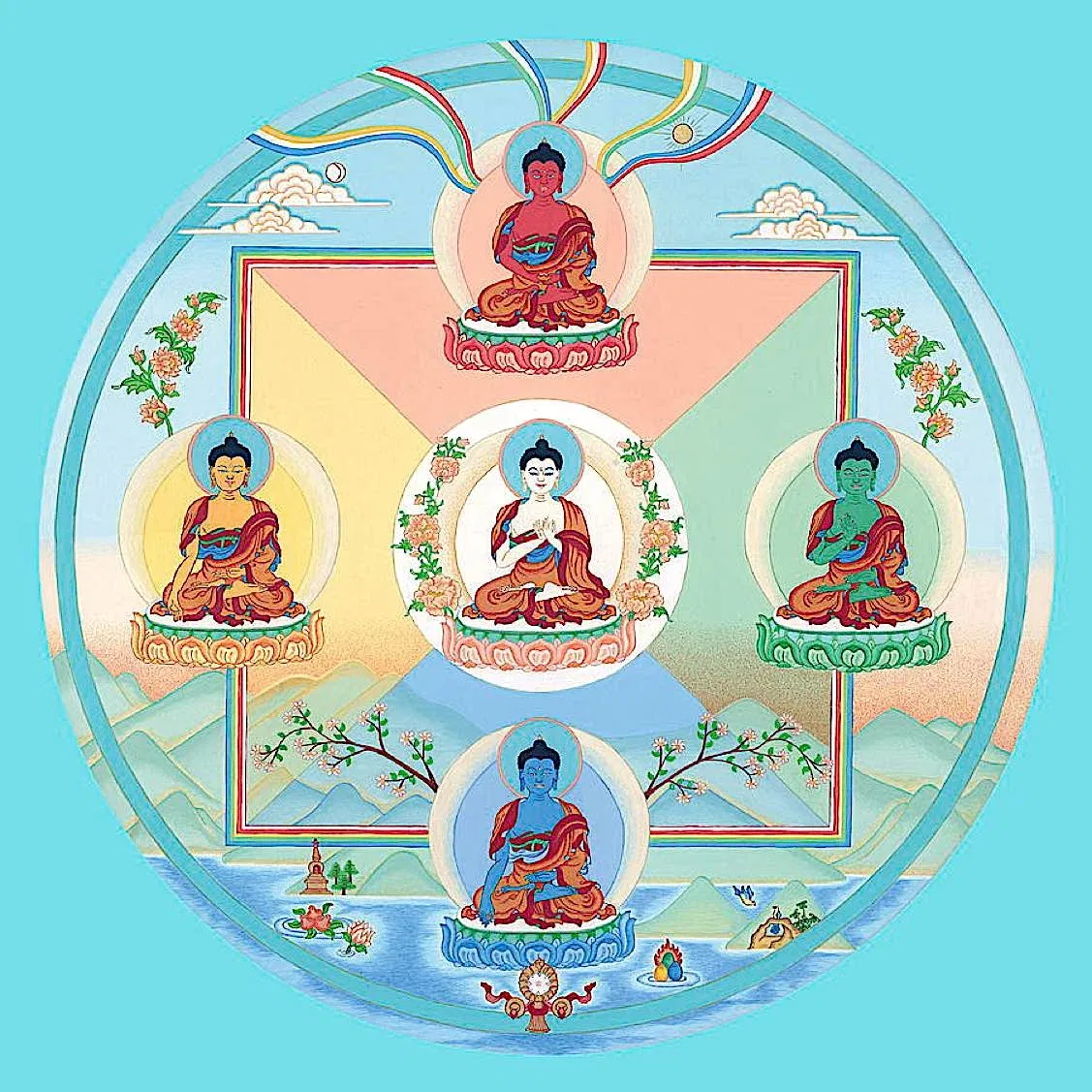 The path is indicated by the next four syllables. Mani, meaning jewel, symbolizes the factors of pure intention so as to become enlightened, filled with compassion, and love.
