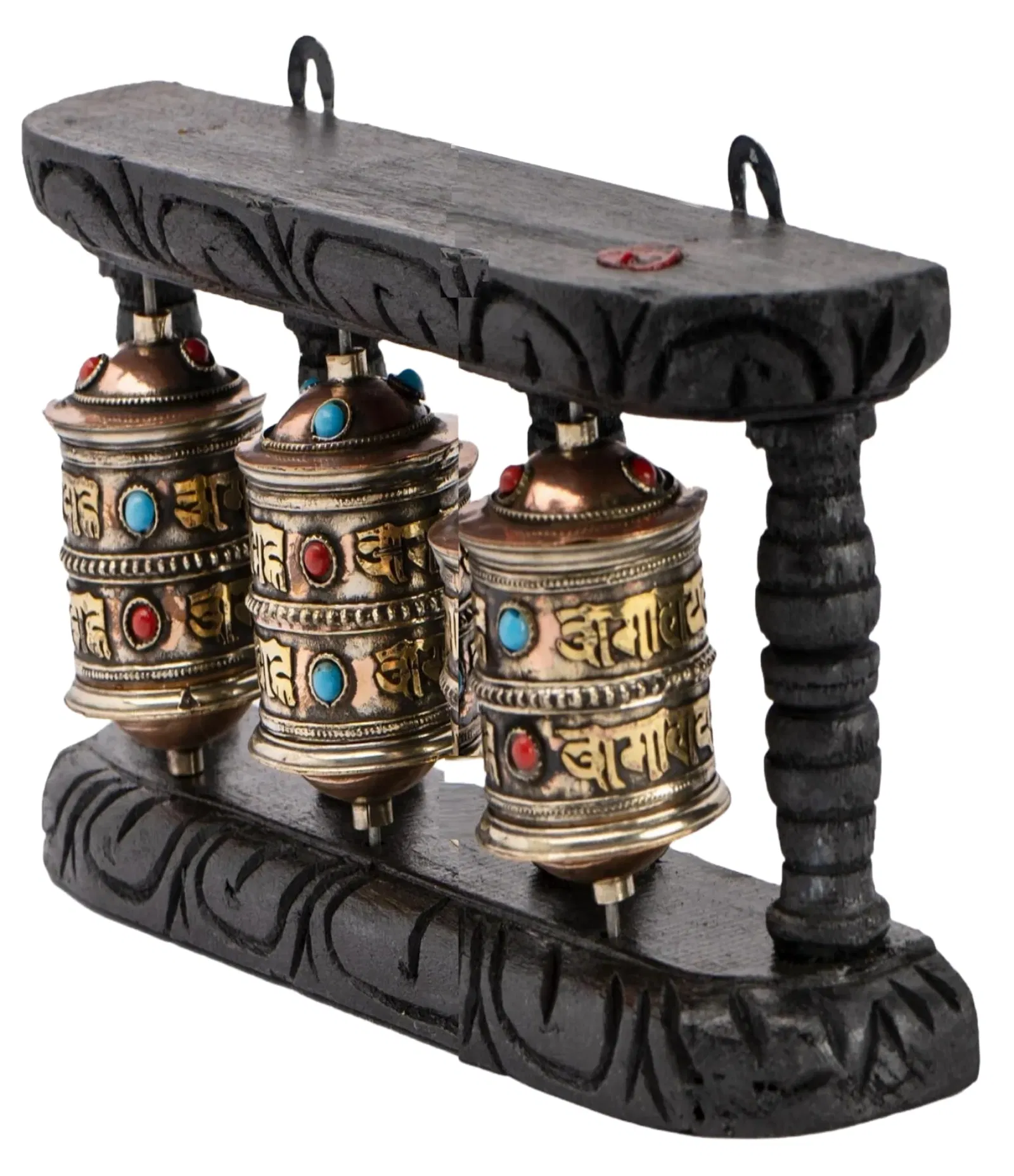 One following the Buddhist traditions, often uses a turning wheel while chanting this mantra. According to the Buddha the “turning of the wheel” signifies a great and revolutionary change with universal consequences, brought about by an exceptional human being. For practical purposes the Turning Wheel often exists as a Prayer Wheel, which a person holds and rotates as one is chanting the buddhist mantra.