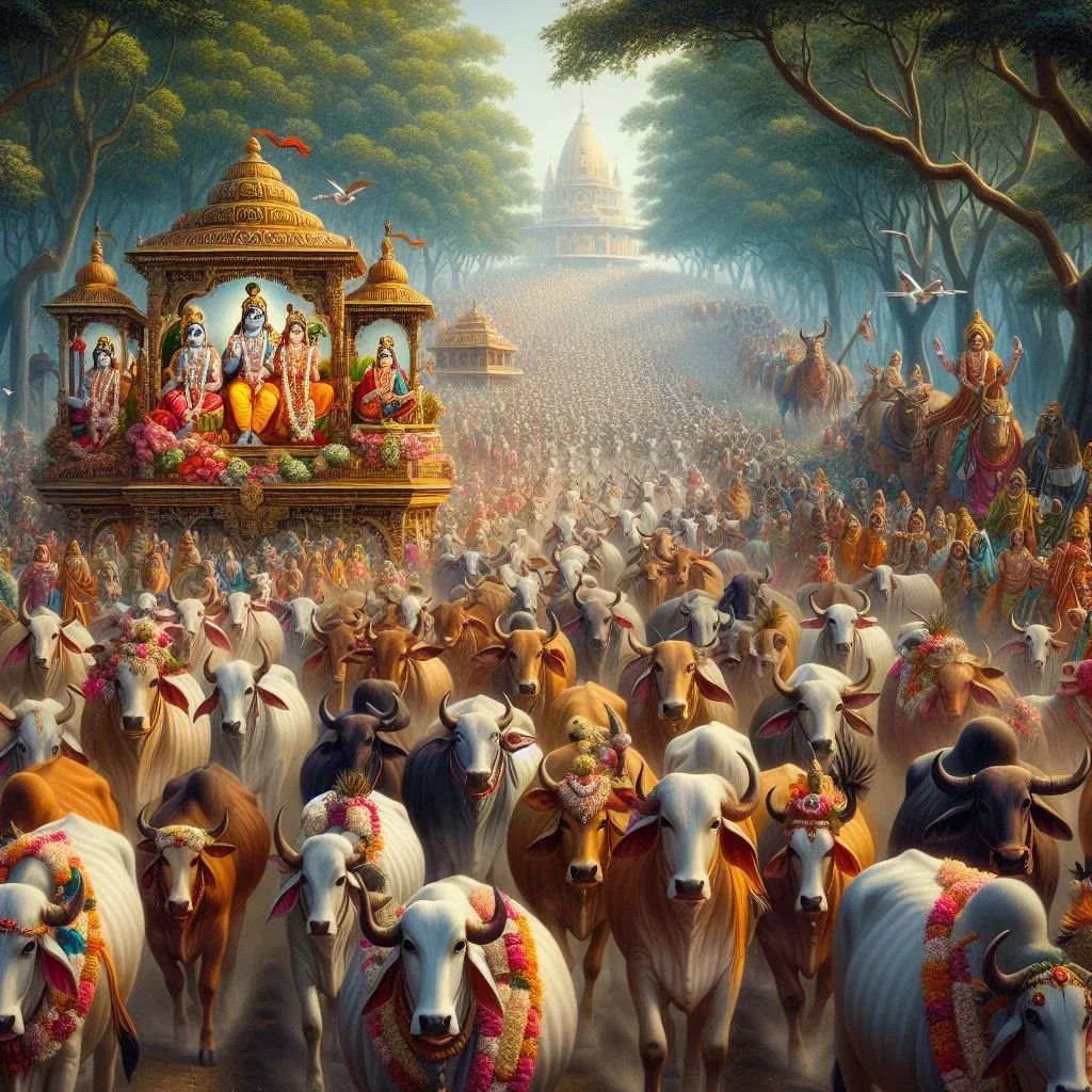 The Cows did not realize that these calves were love personified because they were none other than the expansions of Lord Govinda. Sri Brahma realized his grievous mistake and returned the friends and the cattle to Sri Krishna, begging mercy at the feet of the great Lord. Thus, the Cows of Vrindavan are special and are non-different from Lord Govinda Himself.