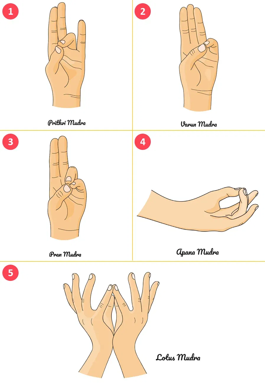 His upper hand holds a rosary and flame while His lower left hand holds a bundle of Kusha grass. His lower right hand depicts the Vyākhyāna Mudra as he is the universal teacher. Vyakhya means explaining in detail. To be precise, his index finger touches the tip of his thumb. Here, the thumb represents the Lord, the index finger represents the individual soul while the three individual fingers represent the three inborn impurities namely egotism, delusion, and wrong deeds done in the previous lifetimes.