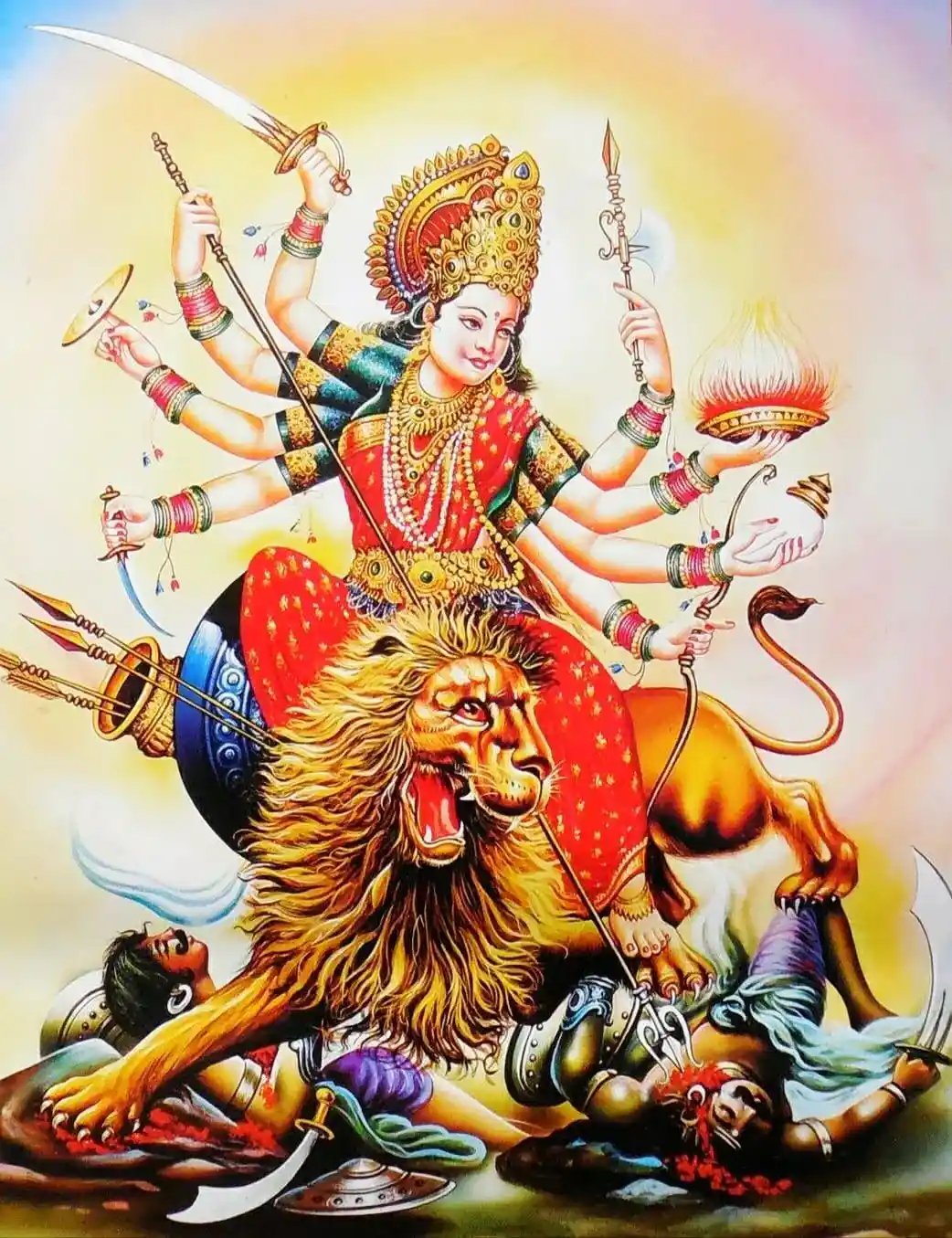 Finally, the Asura confronted the thousand- armed Mahashakti in the Vindhya Mountains while pursuing Kalratri and died in battle with her. Hence, she is known as Durga since she killed the demon Durg.