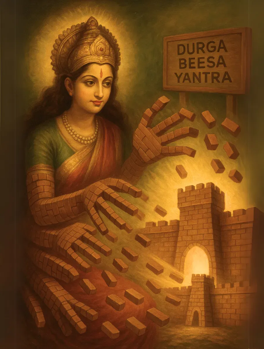 Her 20 (or even more) hands represent cosmic control and assure the devoted to remain fearless as the Devi stands prepared to combat adversities. The Durga Beesa Yantra thus becomes a numerical representation of the goddess’s multidirectional protection, active on both visible and invisible planes.