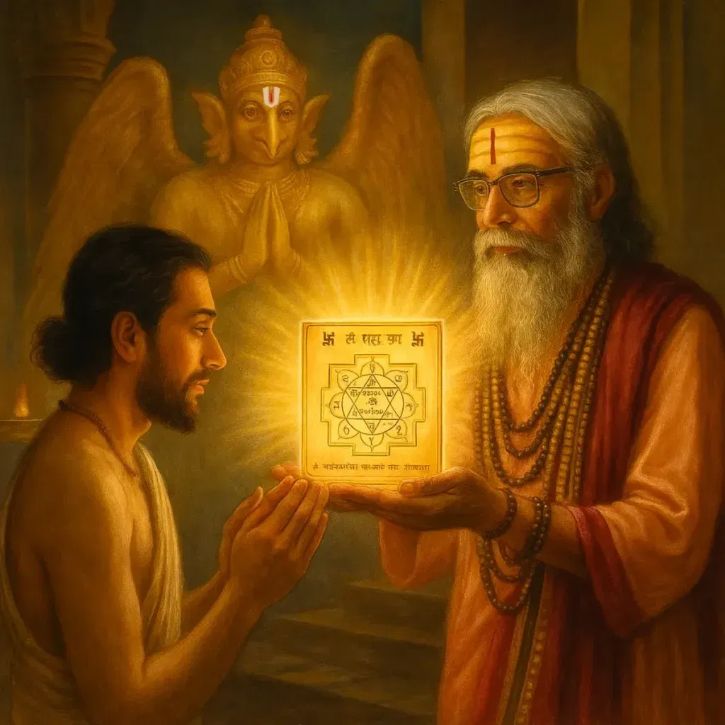 From this living stream of mantra, tapasya, and direct darshan emerges the Śrī Garuḍa Yantram—a way for ordinary seekers to anchor Garuḍa’s protection in their own homes. When worshipped along with the recitation of the Garuḍa Daṇḍakam, the yantra becomes a subtle vehicle through which his speed, fearlessness, and service mood begin to work in the devotee’s life.
