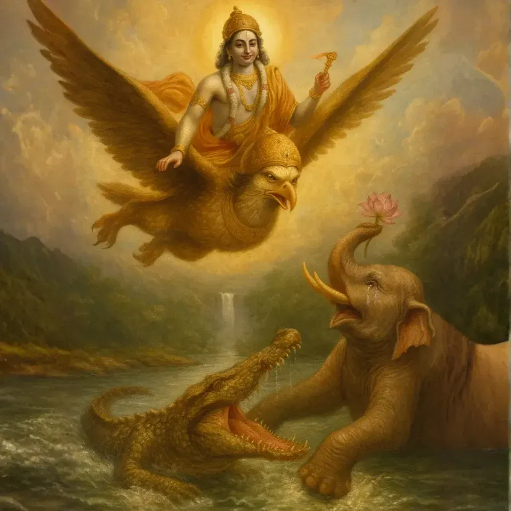He placed Garuda on His own banner, above Himself. This symbolically declares that true glory belongs to those who conquer their inner temptations, not merely external foes. The Lord holds His true devotees higher than Himself.