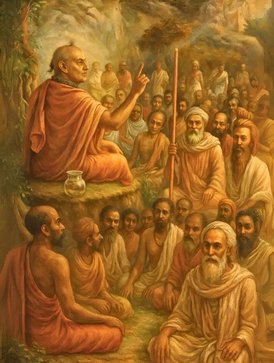 Sauti, popularly known as Ugrashravas Sauti, or Suta Goswami is the revered Narrator of the Mahabharata and other Sacred Puranas. Across various Vedic Scriptures he is depicted imparting the divine knowledge to the assembly of sages led by Sri Sounaka, in the forest of Naimisha.
