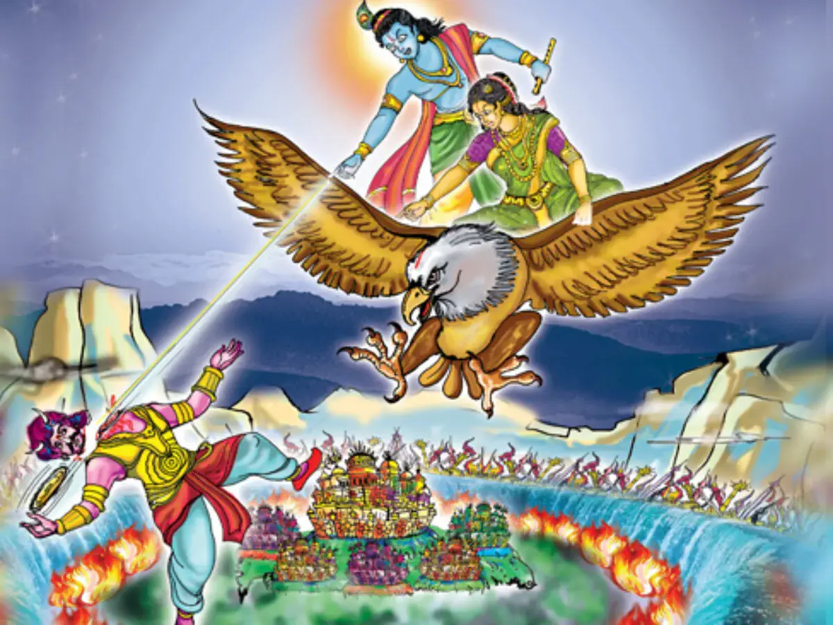 History is full of references where women used to shoulder responsibilities with men on the battlefield. Narakasura had defeated Indra 3 times. To fight Narakasura, Devi Satyabhama took up arms and accompanied Sri Krishna to the battlefield.
