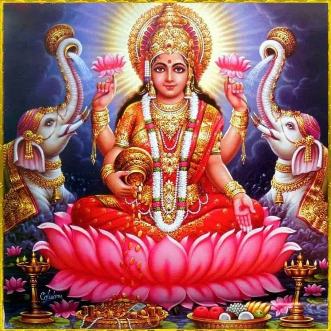 Note that material benefits should not entice the sadhaka. Laxmi Devi is our eternal mother. We should worship her purely to gain her love and affection. Wealth only flows where there is cleanliness and purity of intention. Mother Lakshmi is also very pleased when one venerates her husband Narayana.