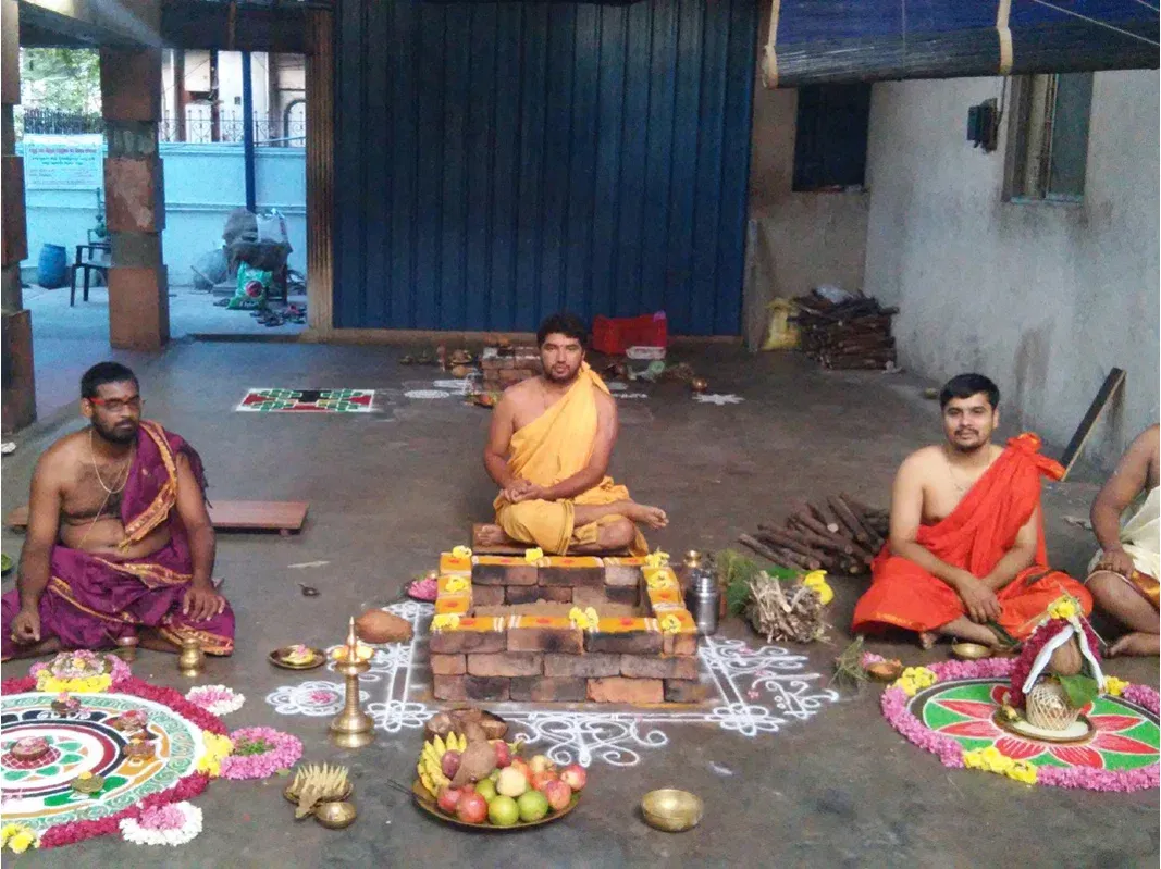 He has to perform the Pooja with items like flowers vermilion rice and other admissible items along with following the rules of yagna. He makes thousand offerings to the fire god with these articles. If he has chanted ten thousand mantras, this is one tenth of the total number of mantra japa that the person has performed.