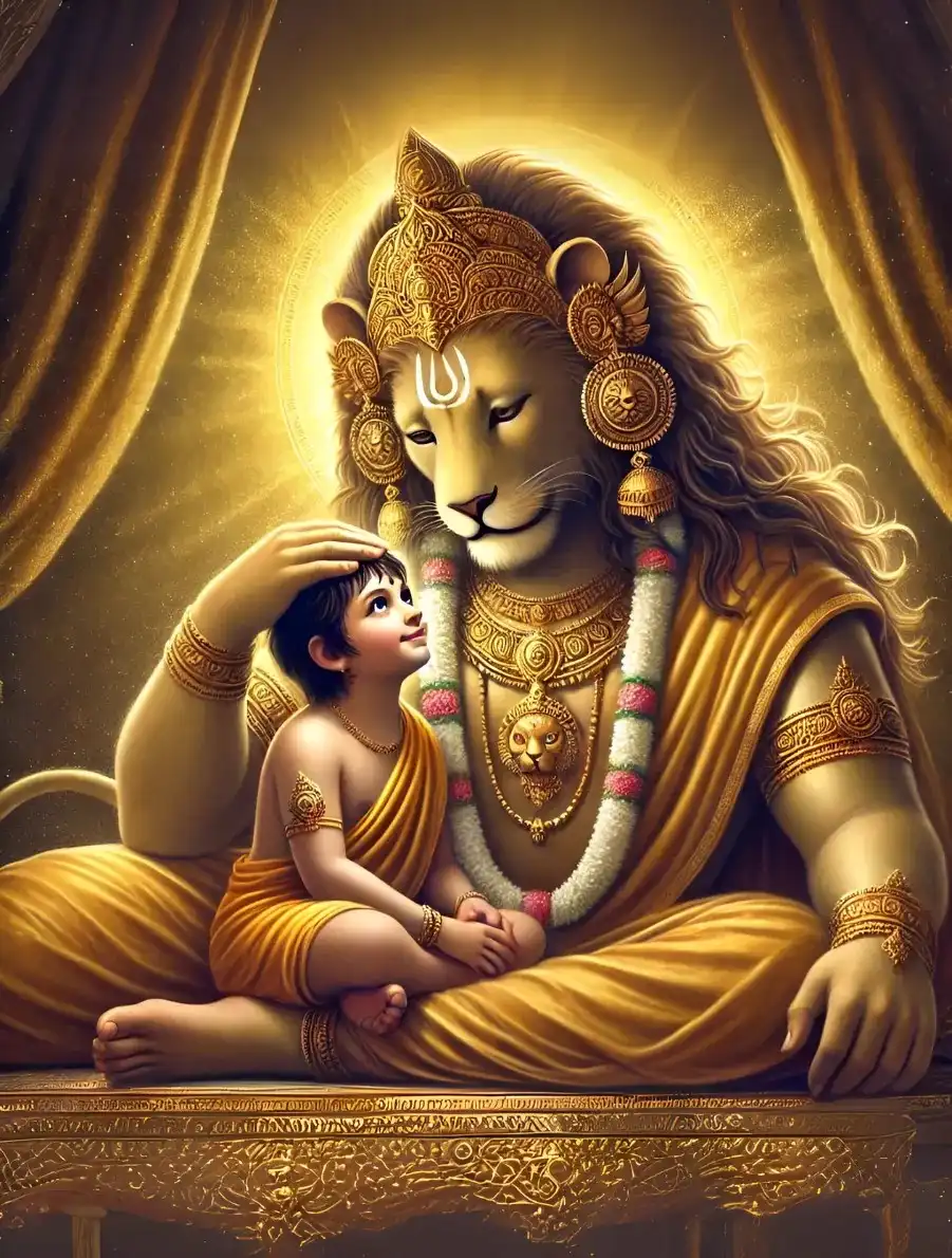 This sacred hymn holds immense power to bring peace, prosperity, and protection to those who chant it sincerely and who take special interest in Bhagawan Narasimha Deva, those who consider Him as a father figure just as little Prahalad Maharaj considered this fierce form of Bhagawan as His eternal father leaving aside his attachment to his biological father, demon Hiranyakashipu.