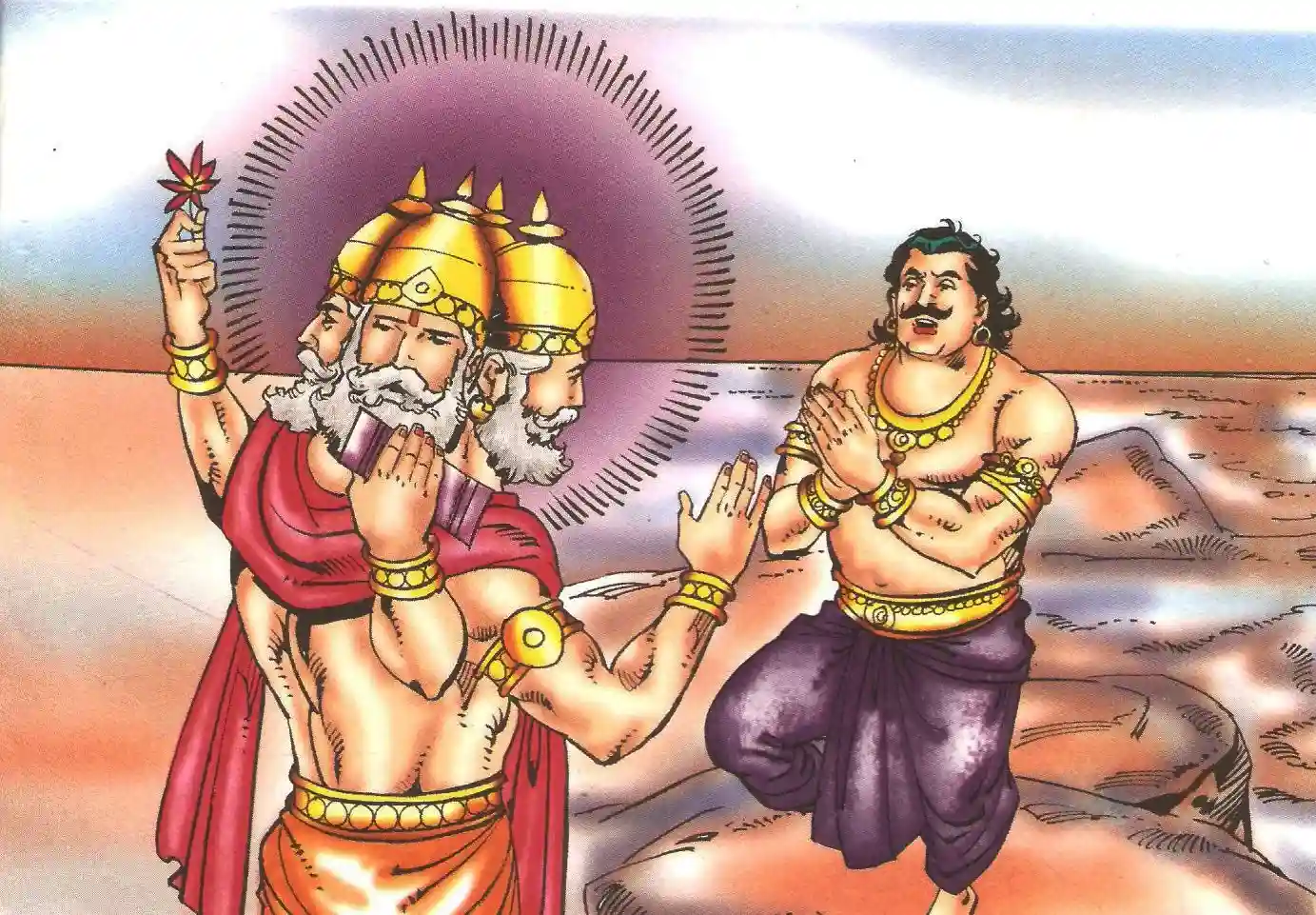 Back in the mountains, Lord Brahma asked Hiranyakashipu to express his desire. Of course, Hiranyakashipu demanded immortality.