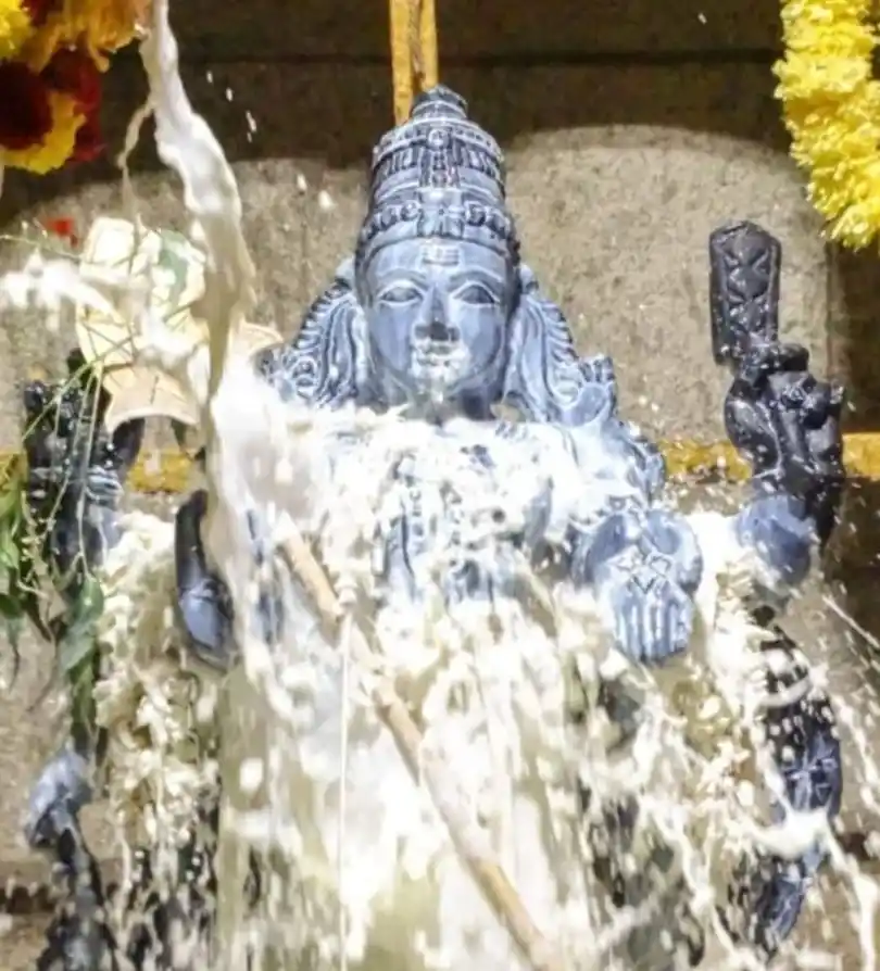 A Sidhhar by the name Bogar formulated the Sri Vigraha. The ingredients are certain types of elixirs by the name “Nava Pashanam”. Nava Pashanam surrounds itself with many stories retold over generations through the great Puranas.
