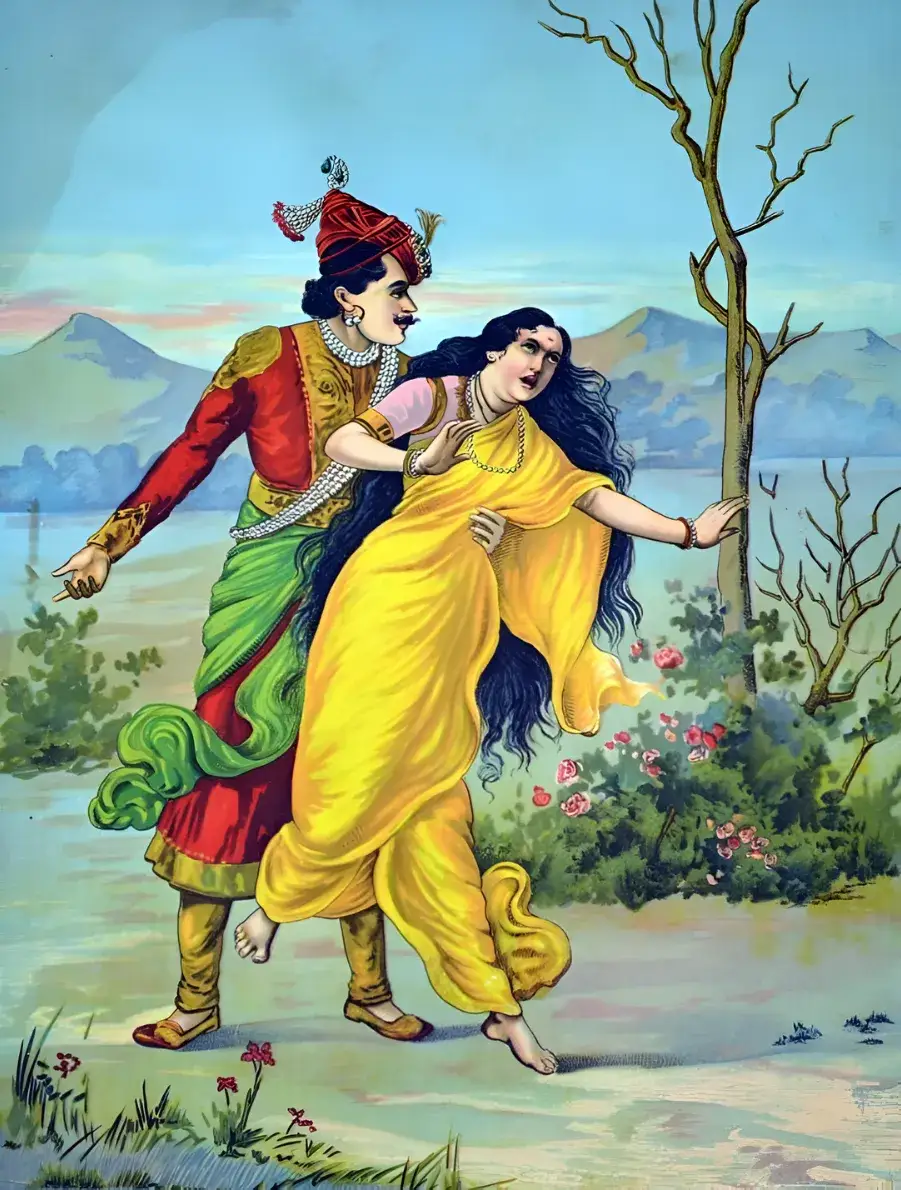 However, the humiliated participants protested and attacked the couple. Subsequently, Lord Krishna’s interference controlled the situation. Finally Arjuna brought his newly wedded bride along to his little hut.