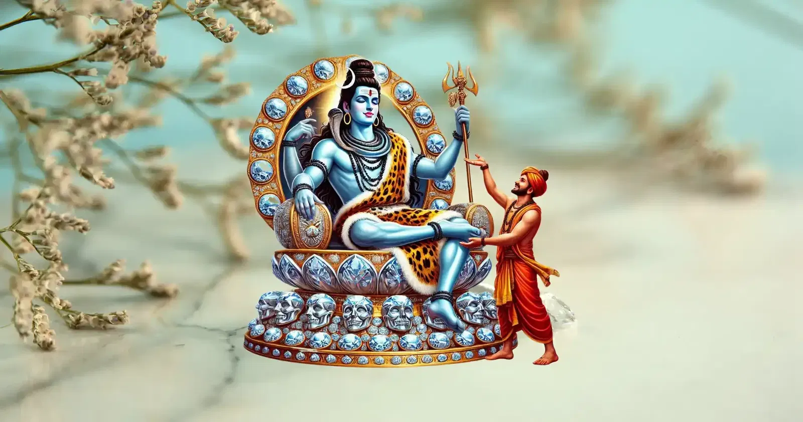 Now I shall start the guided meditation of Lord Shiva. First meditate on Guru and seek his blessings. Then imagine Lord Shiva seated on a jeweled throne. You are bathing him with the fresh waters of the Himalayas. After bathing him, you offer him a jeweled, studded, divine garment to wear.